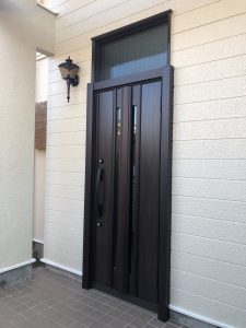 玄関ドアはカバー工法で、木枠からアルミ枠になりました。
