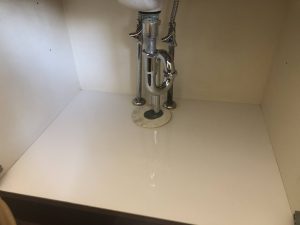 工事課の宇佐美です。本日は洗面化粧台の収納部が水浸しとの事で