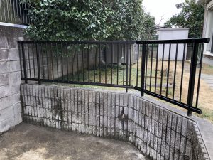 LIXILアルミフェンスを施工しました。既存ブロックにコア抜きをしてフェンス柱を建てた事で綺麗な一体感が出る仕上がりとなりました。