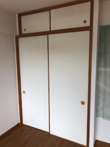 冷暖房を考慮して既存の戸襖・本襖を再利用し「クロス・襖紙」を「木目調」のデザインに貼替を致しました。