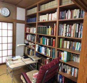 書棚の背面壁はすべて補強し、地震が来ても倒れないように施工しております。