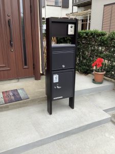 YKKの宅配ボックスにポストと、インターホンも設置し、使い勝手も見た目も格好良く仕上がりました。