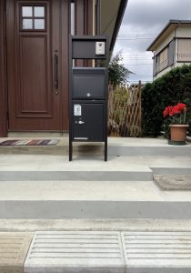YKKの宅配ボックスにポストと、インターホンも設置し、使い勝手も見た目も格好良く仕上がりました。
