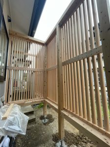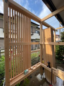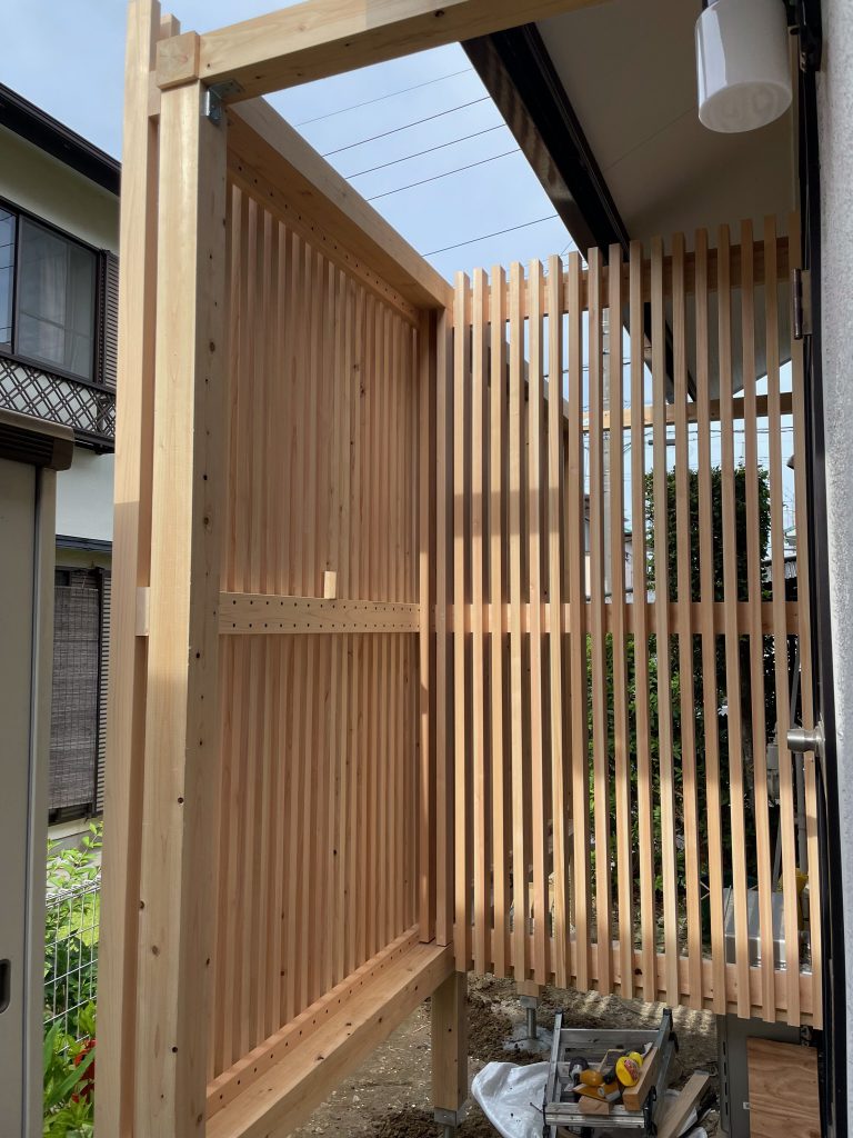 正面からだとちょっと開きすぎかなと思いますが、斜めからであれば十分目隠しにはなります。