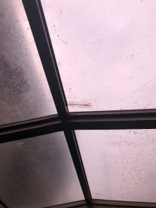 外れてしまった屋根材(ポリカ)は幸いにもヒビは入っていましたが欠損は無く再利用が可能な状態でした。