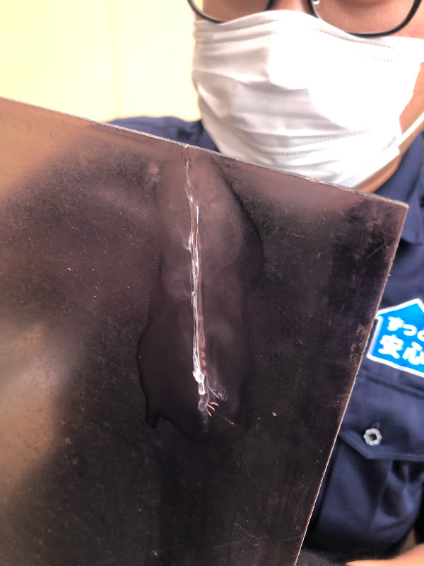 交換もご提案しましたが、今回はひび割れを接着剤で補修、防水テープを張り付けて、再度取り付けを致しました。