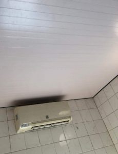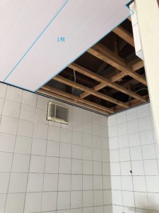 この野縁と呼ばれる下地の木の部分に新しい天井材を1枚ずつ釘で固定していきます。