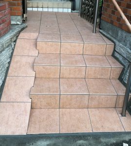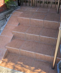 佐倉市王子台にお住まいのK様宅にて、先日玄関外の床をコンクリ―トからタイルに変更させていただきました。その際、雨が降った時の安全対策として、滑り止めの施工を後日行いましょうとお話しさせていただき進めてきました。