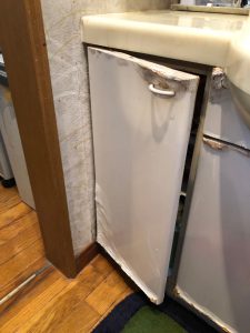 吊戸棚はまだ使用可能との理由より、今回は交換をせずに、横収納・下台収納の扉を交換しました。