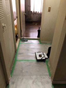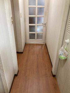 施工箇所は玄関廊下!!長年住まれているとフローリングの沈みや床鳴りが気になりますよね。これからご紹介するお客様もそんな些細な悩みを解消したくご相談していただきました。