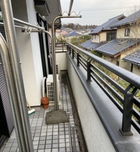 物干し台を撤去して、新しい物干しを宅内側ではなく腰壁側に取り付ける事でスペースを有効活用できるようにしました。