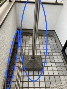 物干し台を撤去して、新しい物干しを宅内側ではなく腰壁側に取り付ける事でスペースを有効活用できるようにしました。