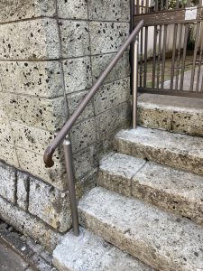 外部手摺の材料は腐食しない事と強度の面を考えてアルミ製が多いのですが、