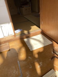 従来の和室には、床と出入りする部分に段差があるので、フローリングの上貼り工法で綺麗に仕上げることができます。