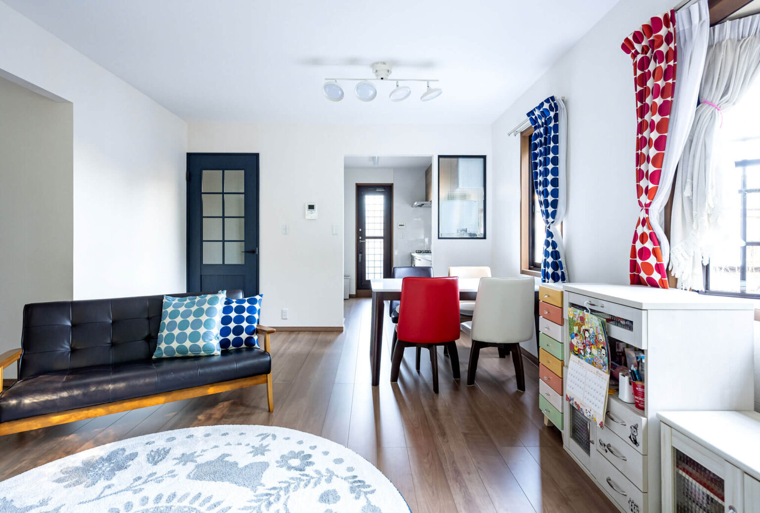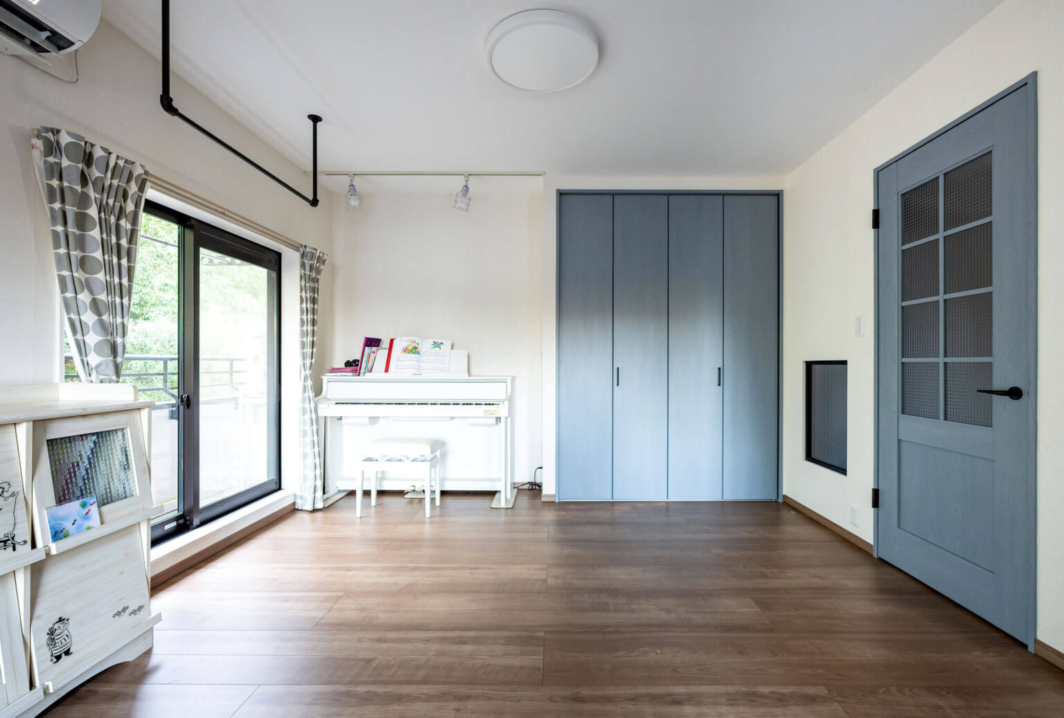 日中の暗さに対しては、軽量鉄骨造のために外窓を大きくすることはできないため、部屋を仕切っている壁にガラス窓を設けたり、建具ドアもガラス面の大きなものをご提案させていただきました。