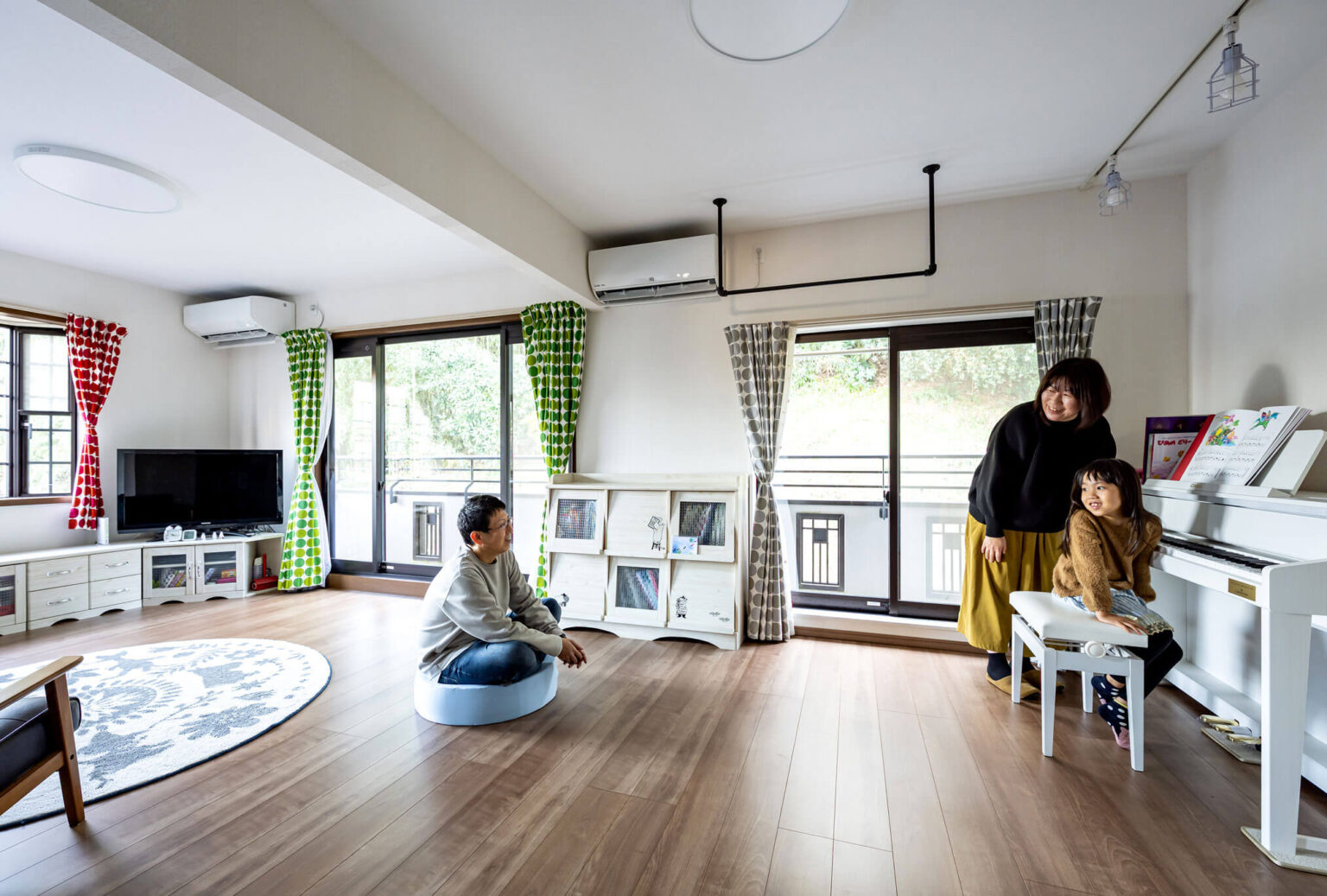 二世帯住宅ならではの悩みをお持ちでした。2階に暮らすお客様はまだ小さなお子さまの足音が1階の親世帯に響くことを気にされていました。そして、家の南側が小高くなっているため、日中の暗さに困っておられました。軽量鉄骨造のため、木造住宅よりも制約がある中でのリノベーションとなりました。