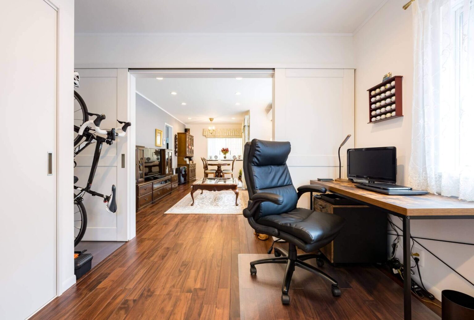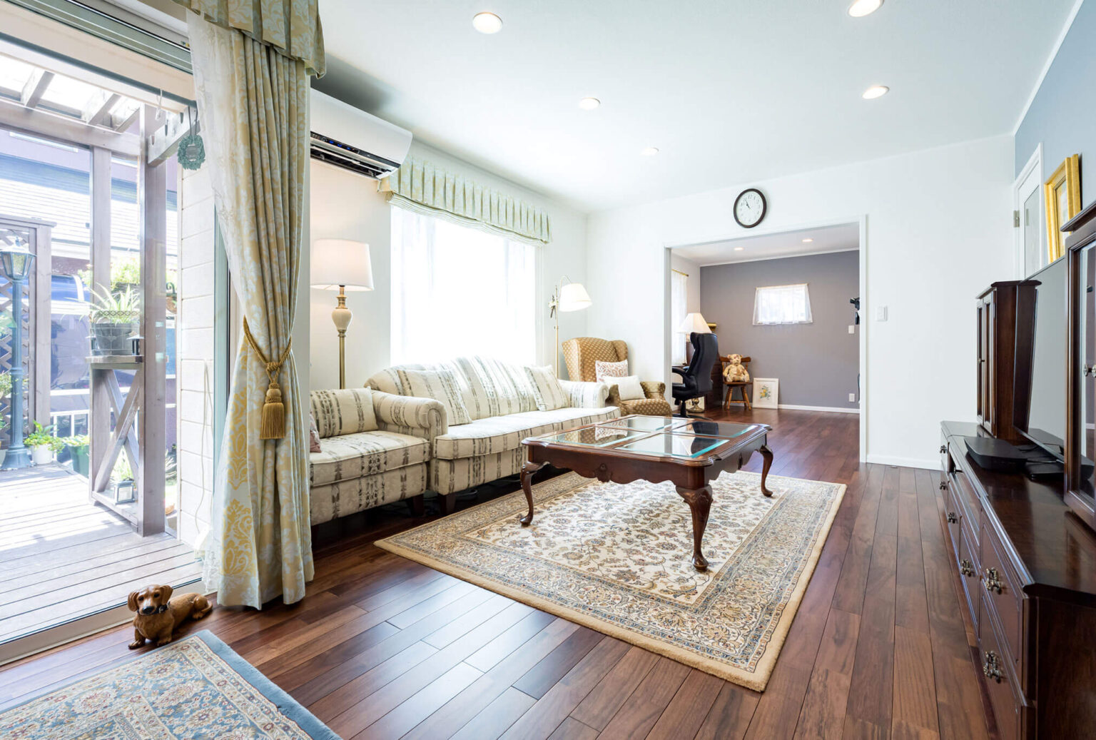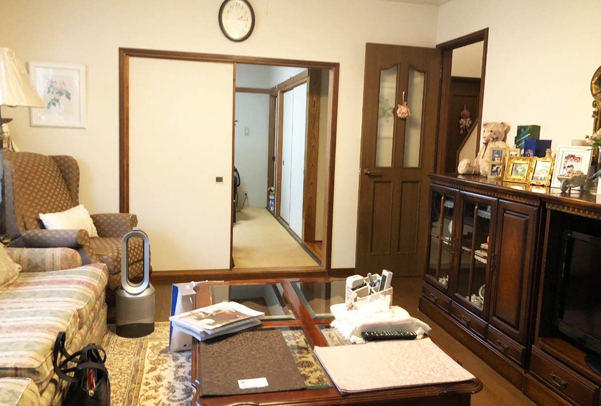南側の隣家によって、日中の陽差しが入りにくい状態でした。お客様の要望に応えるためには、窓のサイズを変える必要がありました。しかし、住宅の構造は「ツーバイフォー工法」のため、制限がかかります。そのため、日の当たらなかった和室の窓を陽射しの当たる高いところに移設。その和室を洋室にして障子を取りはずしことで、明るいリビングになりました。